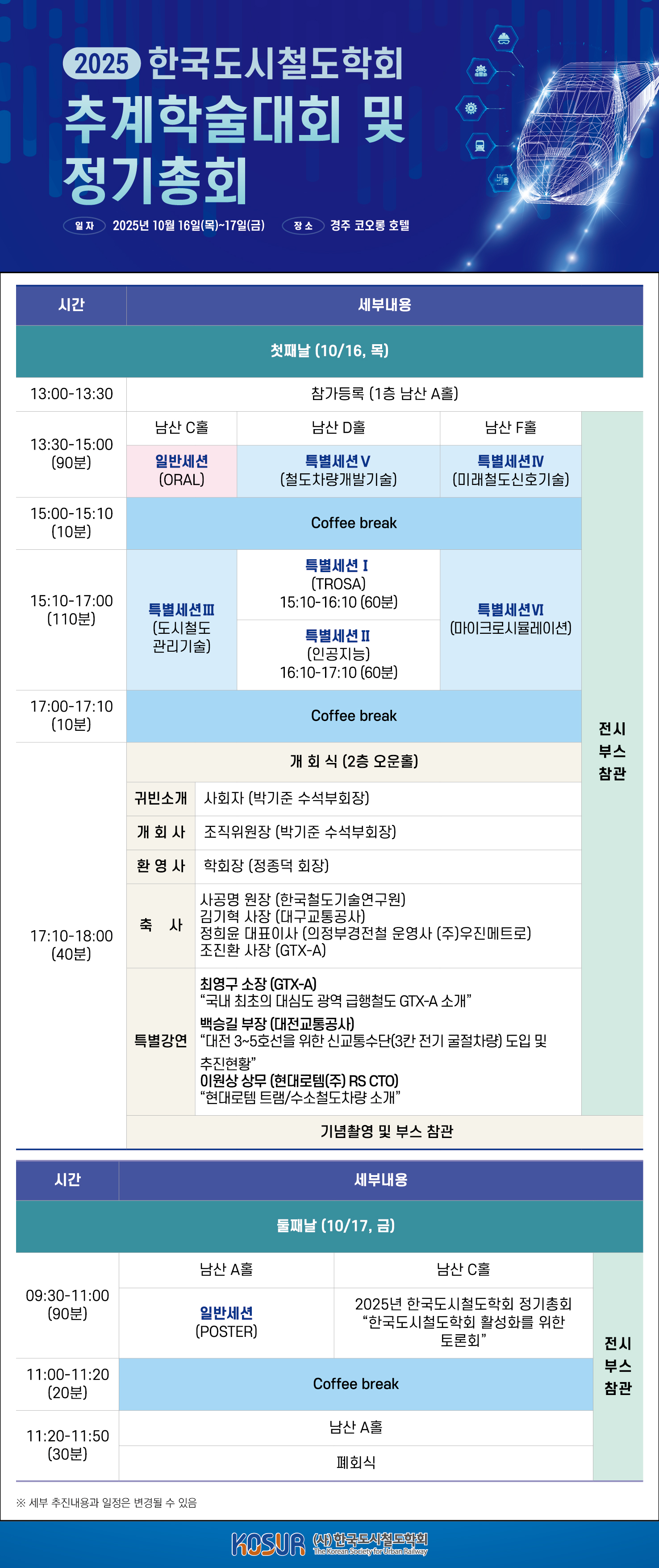 [KOSUR]한국도시철도학회 25년 추계학술대회 프로그램 진... |